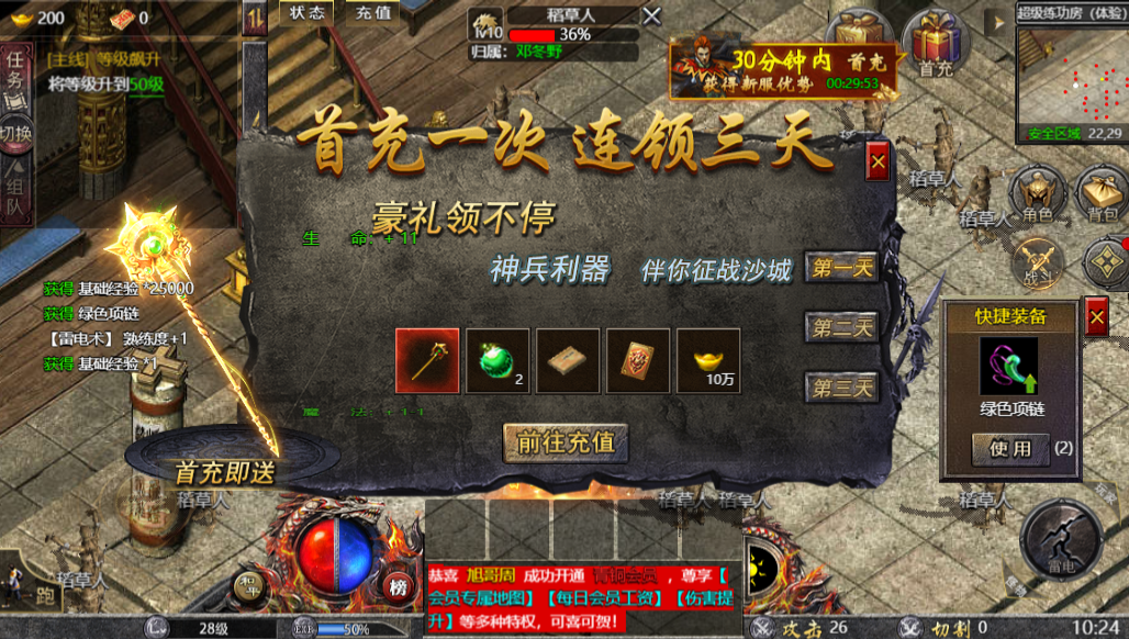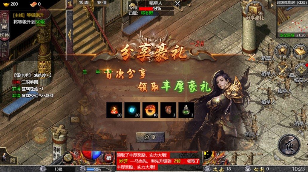 1、界面全新升级,超强合击玩法等你来体验,经典三职业登录即送豪礼。