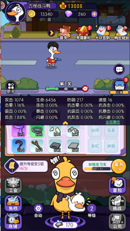 这款Q版休闲养成游戏创新性地引入鸭子喂养系统,玩家可通过培育鸭子获取海量不同品质装备,完美满足装备收集爱好者的需求。在经营鸭鸭世界的过程中,可体验渔佬争霸、怪兽攻城、精英挑战赛、渔具大厦经营、鱼缸合成工坊、神器扭蛋机等十余种特色玩法,更支持招募员工组建团队,开启老板经营模式!