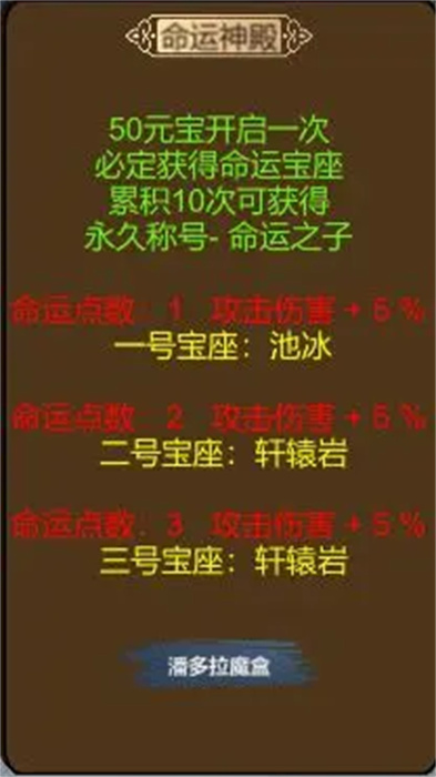 10、全新称号玩法:命运神殿,看谁能成为命运之子,获得独特荣誉。