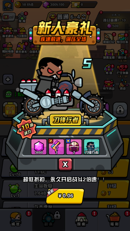 ★【超值礼包】仅需0.06元,即可享受新手豪礼,包括永久加速、S级英雄、10倍战力等,让你碾压全场,成为传奇英雄!