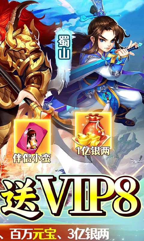 ★上线即享VIP8特权,更有50万元宝、1亿银两、伙伴神级奶牛、伴侣小蛮等丰厚奖励等你来拿!