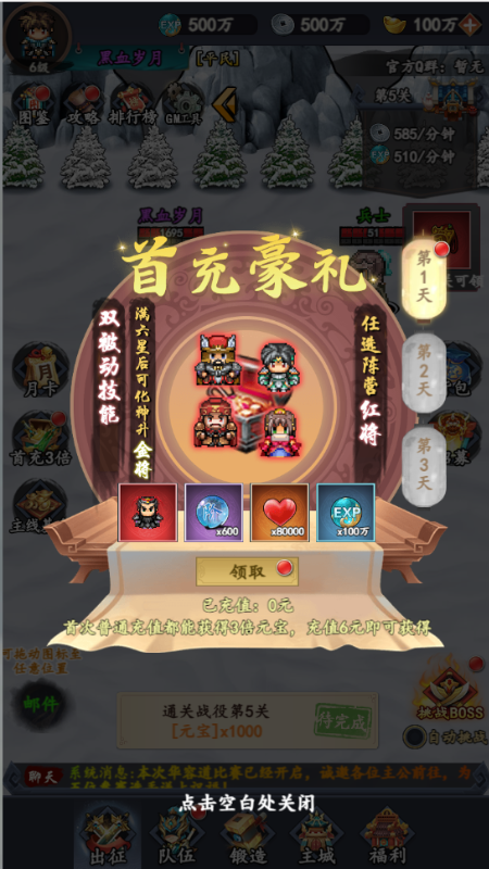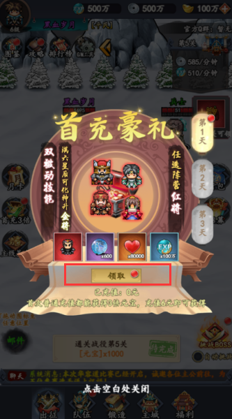 2. 进入游戏后,别忘了领取首充礼包,为你的征程助力。