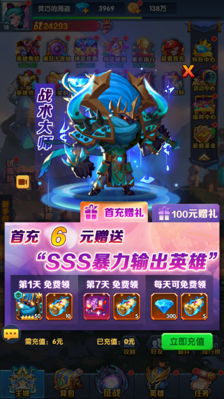 ★首发七日礼,累计登录就送SSS英雄。