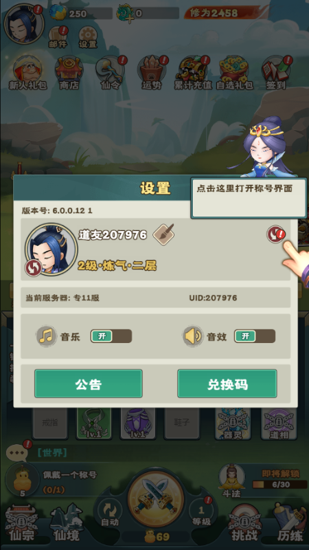 2. 进入游戏后,迅速获取奖励,开启你的修仙之旅