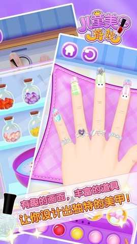 儿童美甲乐园是一款专为儿童设计的模拟经营类手机游戏,适合3岁以上的小朋友。在这里,孩子们可以体验到美甲的乐趣,发挥自己的创意,设计出独一无二的美甲风格。